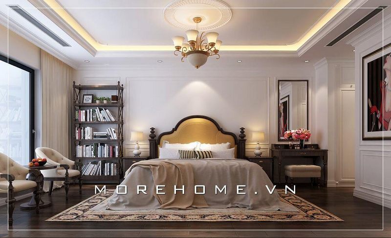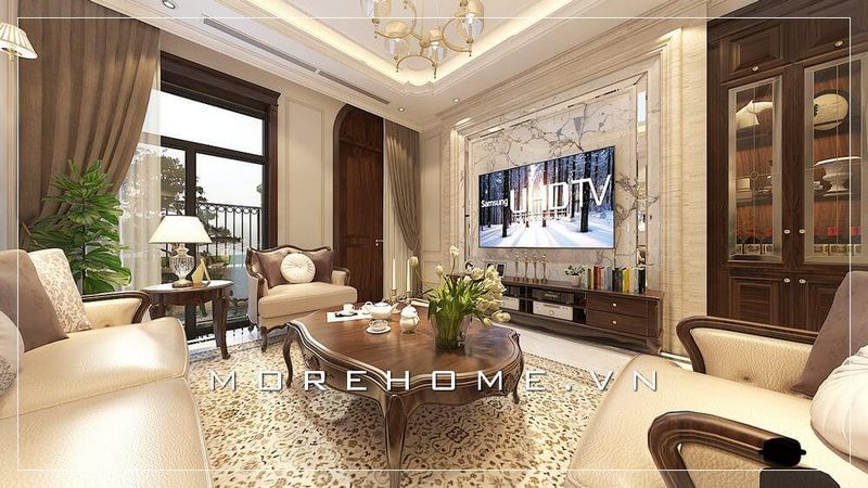 >> Có thể nói, thiết kế nội thất tân cổ điển là một trong những dịch vụ hàng đầu của thương hiệu Nội thất MOREHOME, khởi đầu với ấn tượng đột phá trên thị trường khi có rất nhiều công trình được đánh giá cao ngay từ thời điểm xuất phát như: Keangname, Times City, Royal City, Vinhomes Riverside,... Nếu quý vị có nhu cầu về phong cách thượng lưu này, hãy liên hệ với chúng tôi để chuyên gia tư vấn.