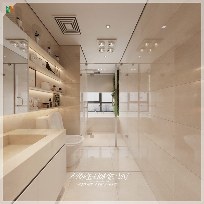 Thiết kế nội thất phòng tắm của căn hộ hiện đại, đơn giản nhưng vẫn đảm bảo đủ tiện nghi.