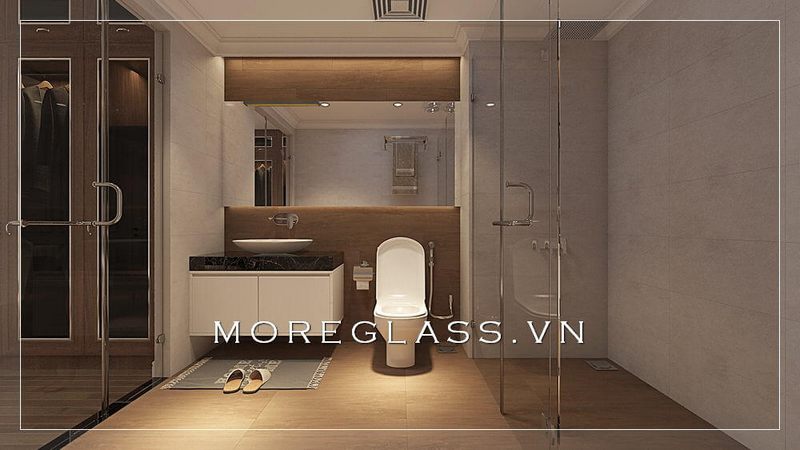 Việc sắp xếp không gian thông thoáng trong phòng tắm không chỉ tạo cảm giác thoải mái mà còn mang lại sự sáng tạo và hiện đại cho căn phòng nhỏ bé này. Một ý tưởng đầy tính thẩm mỹ là sử dụng kính để ngăn cách vùng shower với phần còn lại của phòng tắm, tạo ra một không gian rộng rãi và ánh sáng tự nhiên được lan tỏa hòa quyện khắp nơi.